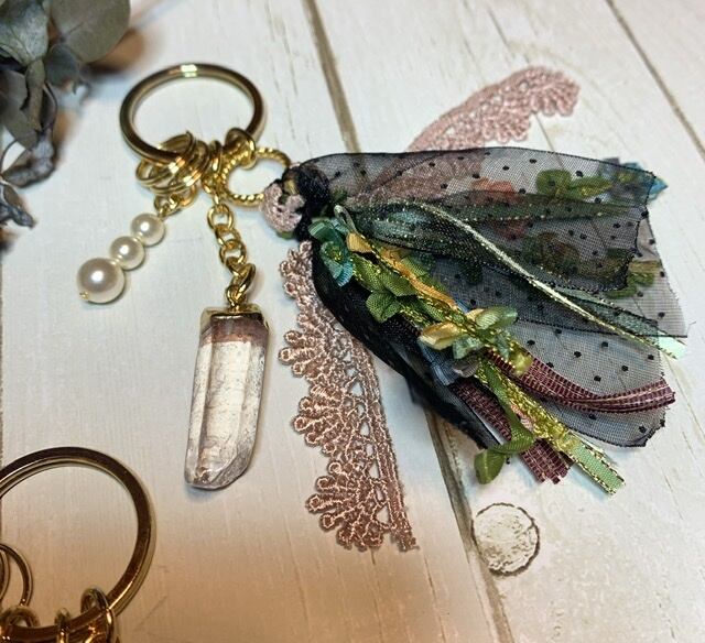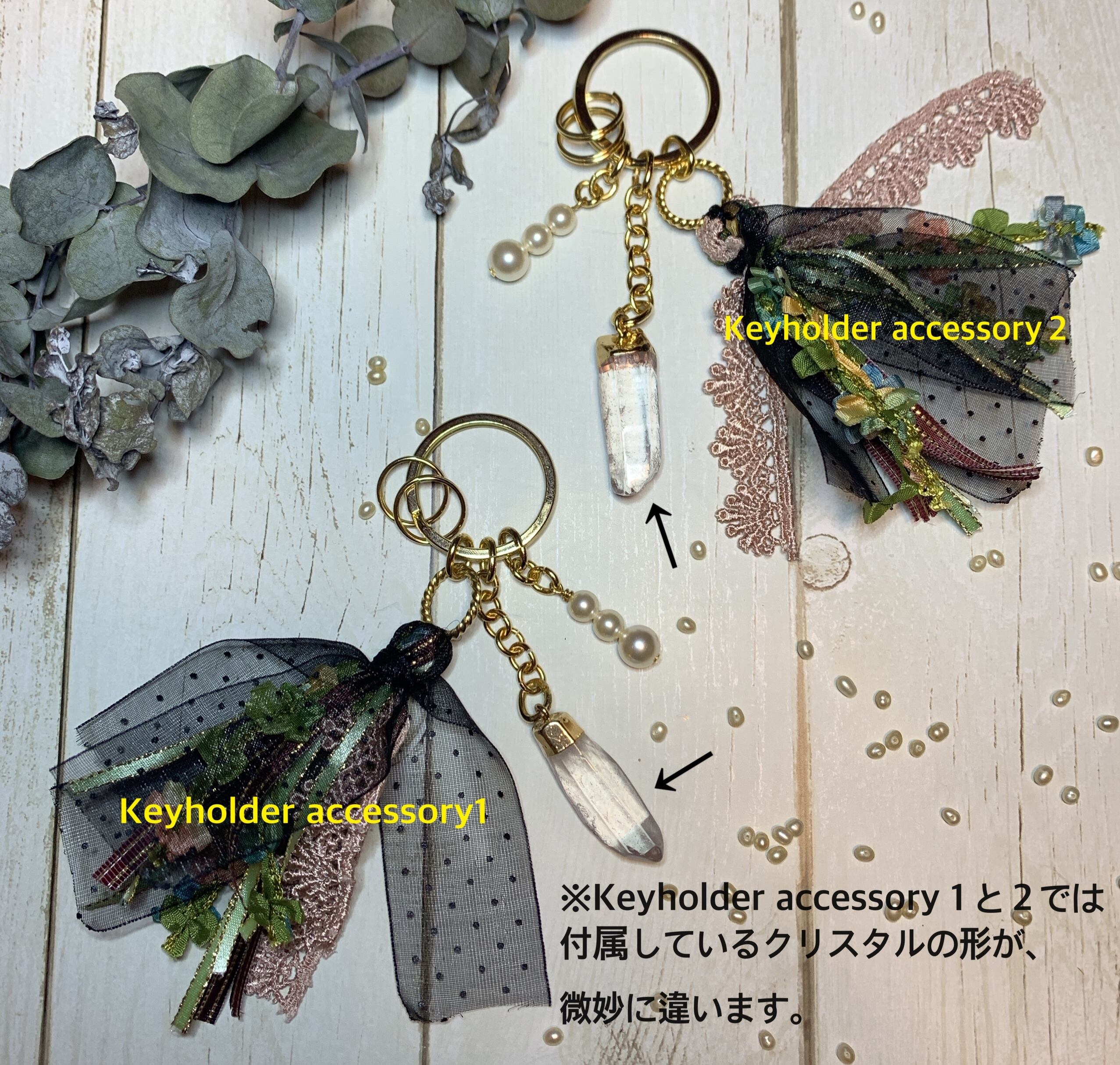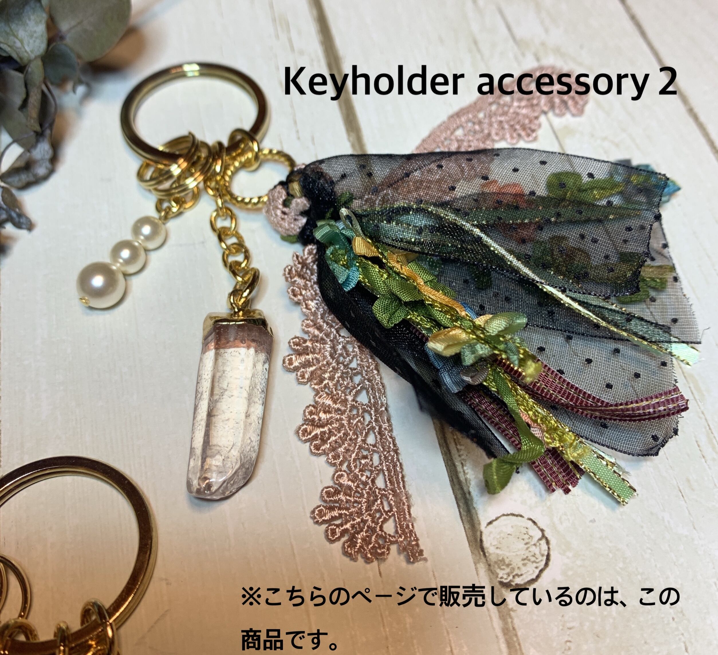 (※Keyholder accessory 1とは、クリスタルの形が微妙に違います。その他、タッセルリボンに使用のレース等は同じです。)