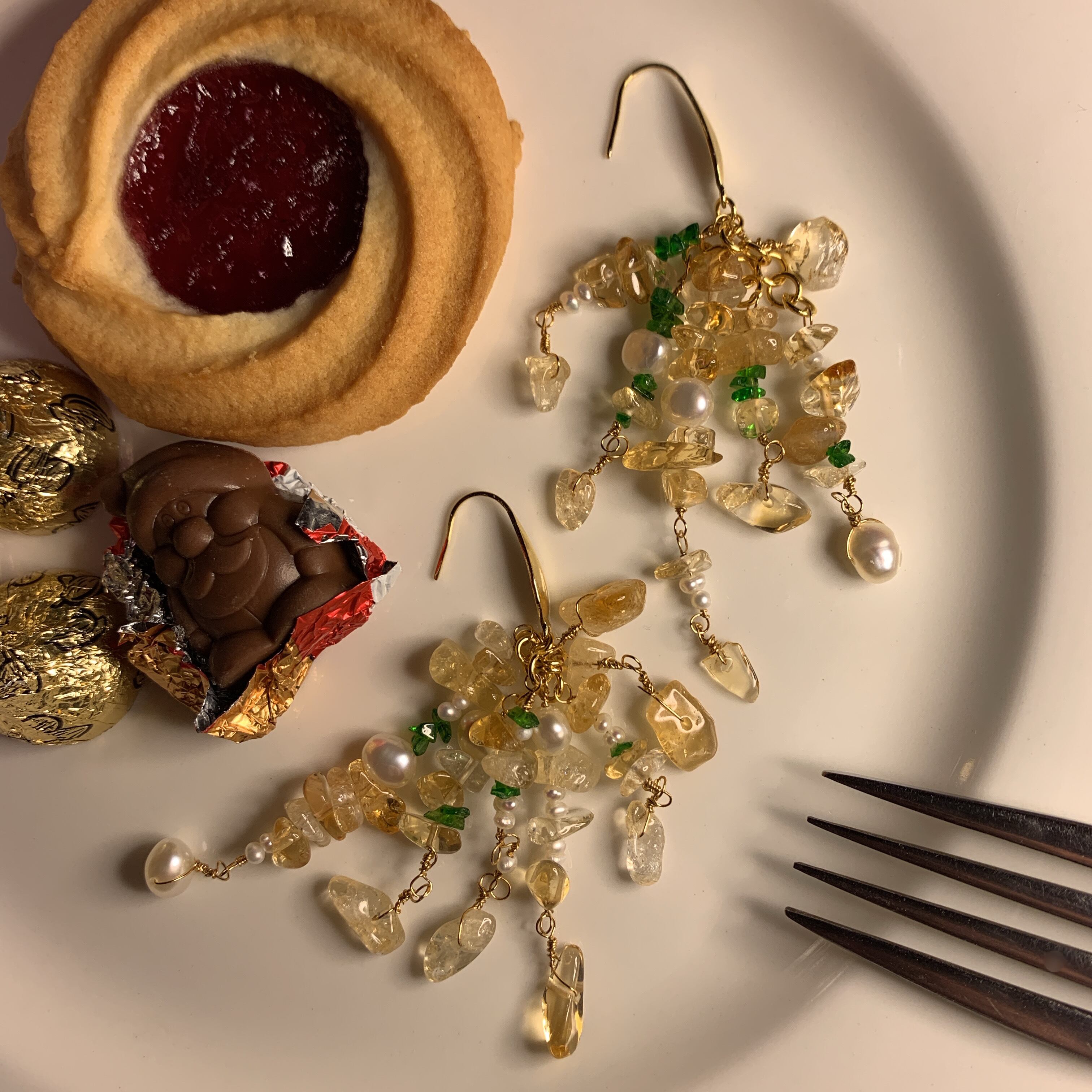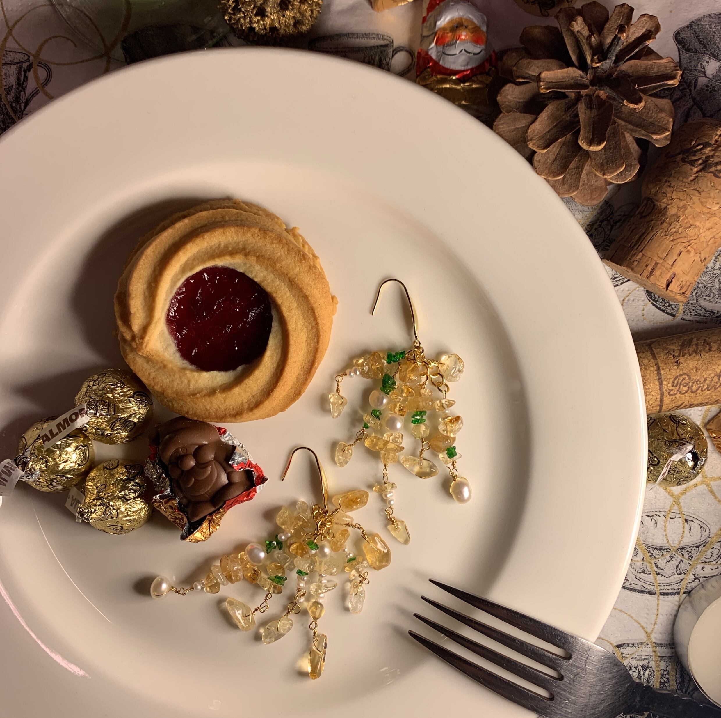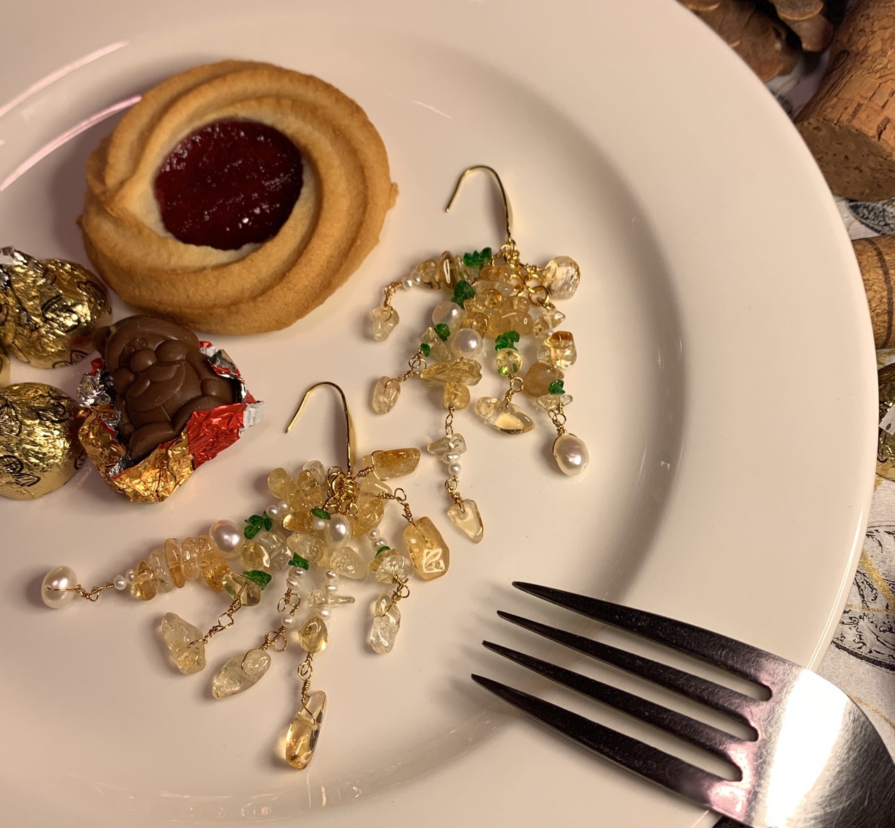 素材:天然石( ストロベリークォーツ・クロムダイオプサイト・淡水パール・シトリン・ガーネット・水晶)・サージカルステンレス・ワイヤーメッキ加工