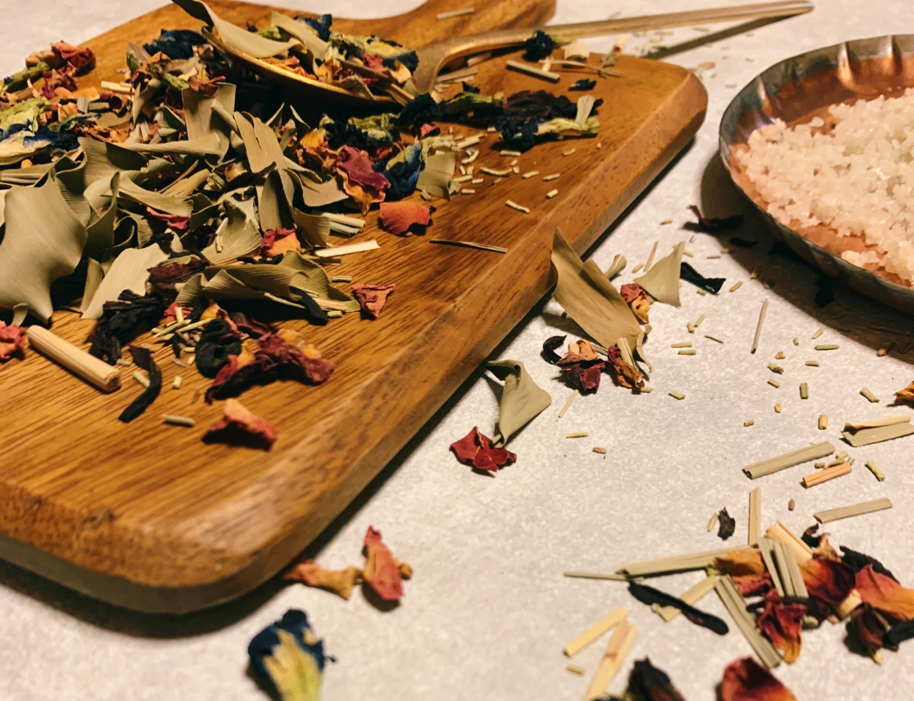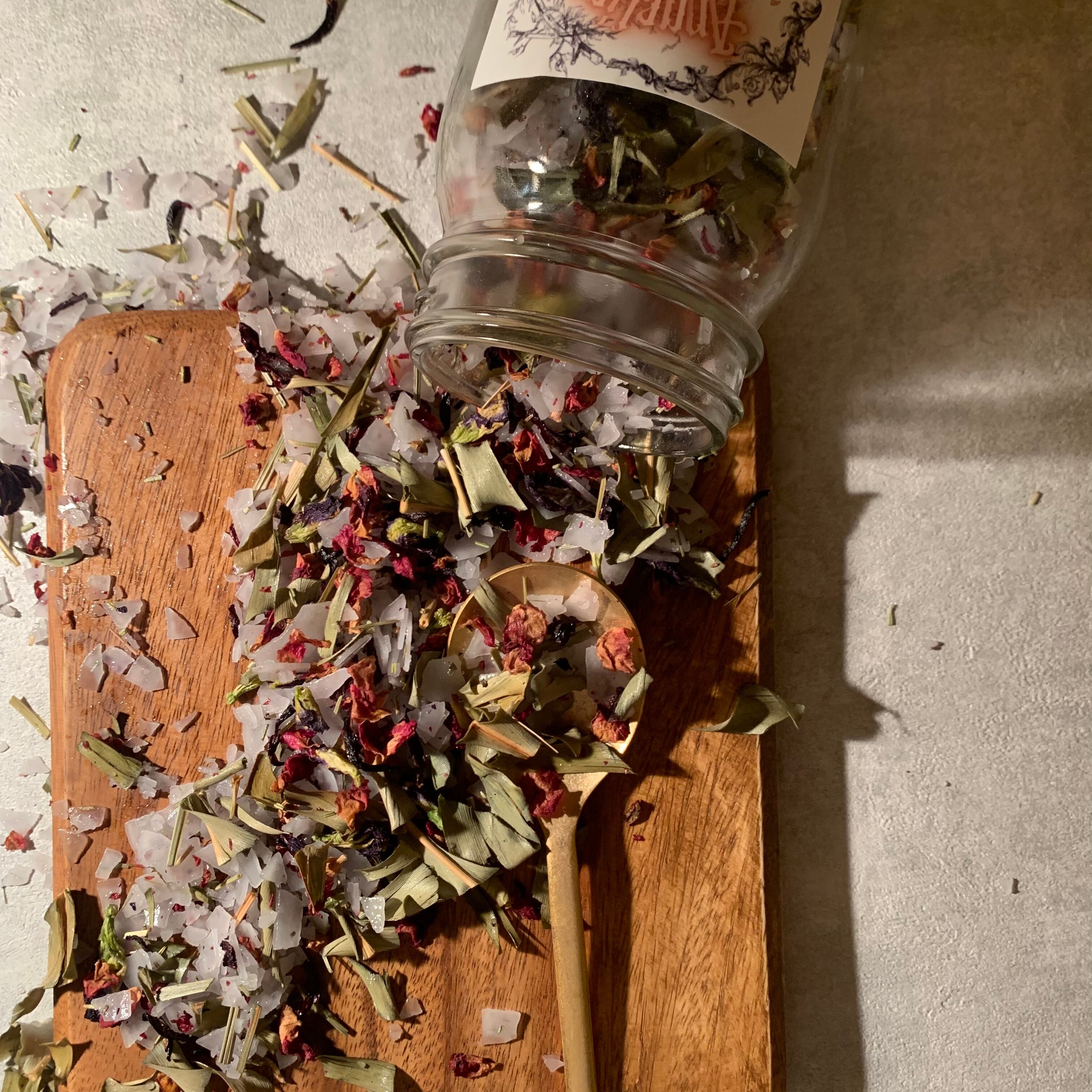 ハーブソルトをバスタブに入れて、芳香浴をお楽しみください。